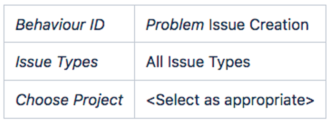 - A set of suitable issue types – Incident and Alerts for capturing occurrences; Problem for the underlying problem resolution; Remedial Action for any corrective actions.