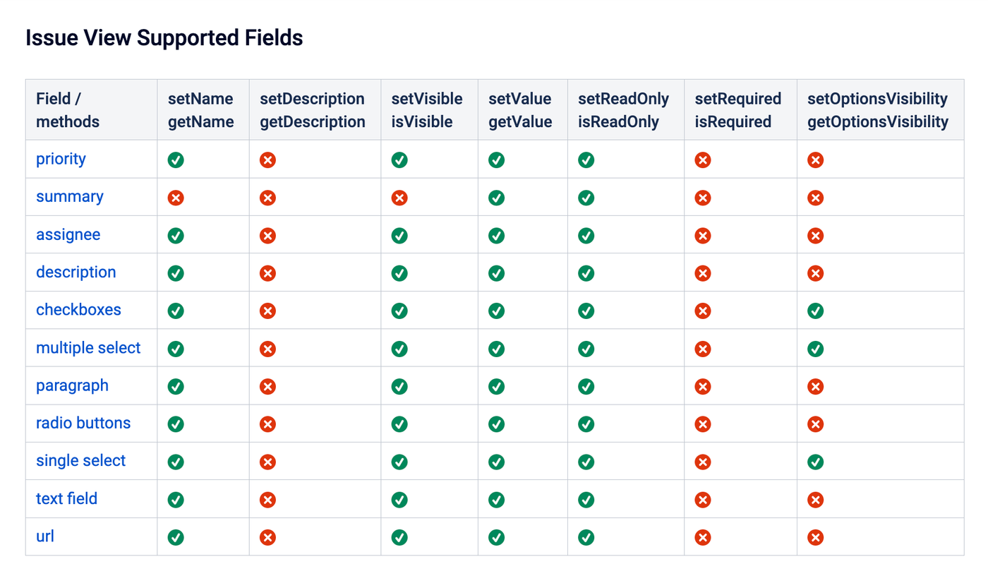 This is the initial release of Behaviours on Issue View: we don’t yet have full field and method support, but we’re working on it. Here’s what’s currently available on Issue View.